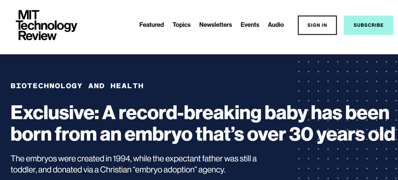 [1] https://www.technologyreview.com/2025/07/29/1120769/exclusive-record-breaking-baby-born-embryo-over-30-years-old/