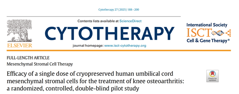 2025年,《Cytotherapy》期刊发表的最新随机对照试验,首次探索了单次注射冷冻保存的脐带间充质干细胞(UC-MSCs)对膝骨关节炎的长期治疗效果。